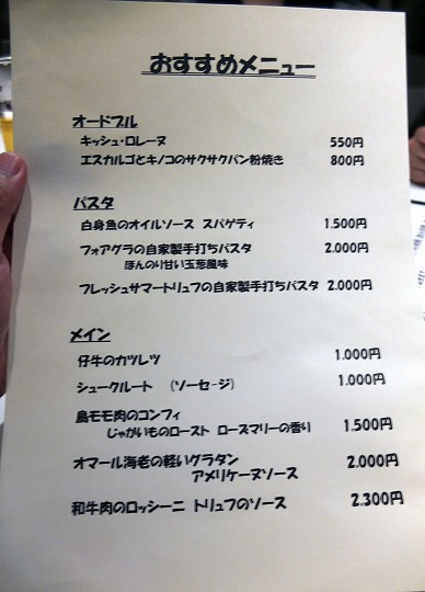 料理も美味しくって、ワインやシャンパン・・・とまでは言わなくても、スパークリングワインなどあればなぁ・・・。