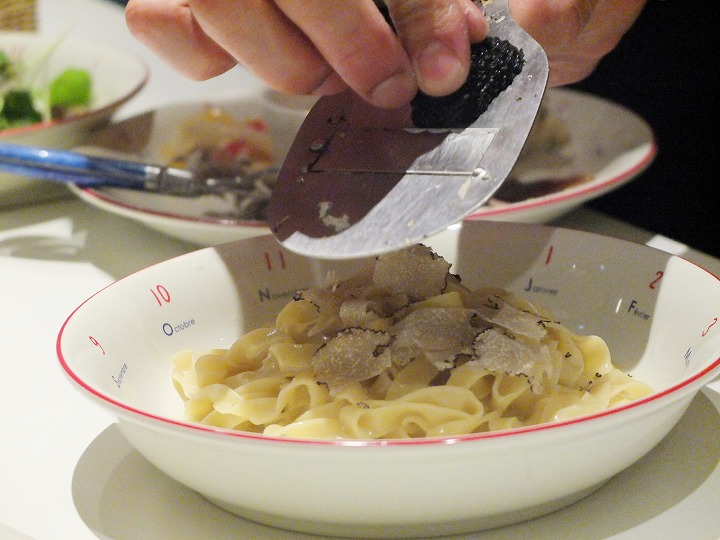 出来上がったパスタの上に、目の前で「これでもかっ!」ってくらいにトリュフをかけてくださいます(^^)