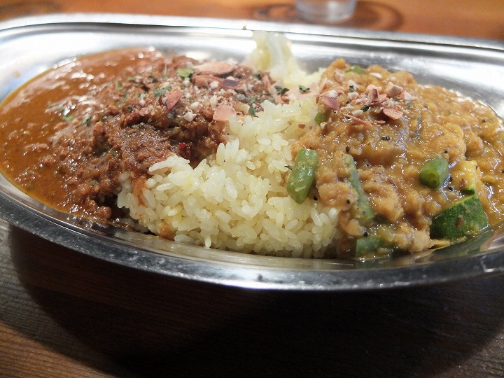 この日は、辛口キーマカリーと豆カリーの2種盛りをお願いしました。