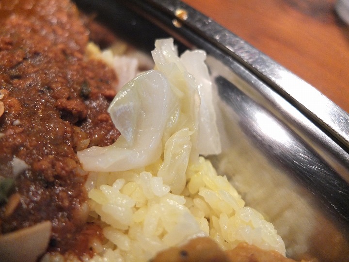 途中で、キャベツのピクルスで口の中を一旦リセットして、またスパイスを満タンにしながら楽しみます。