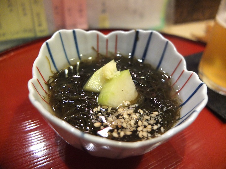 この日、付出しで出していただいたのは、能登の岩もずくと、加賀太キュウリ。
