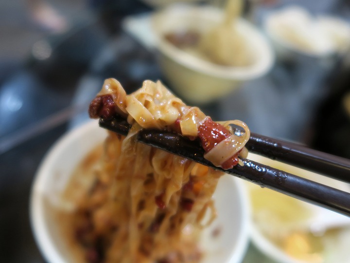 先ほど、同時に湯がかれていたもう一つの麺はこんな感じの平打ち麺。