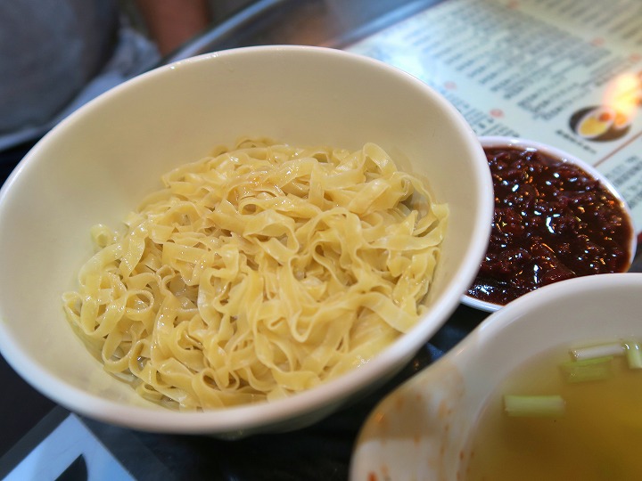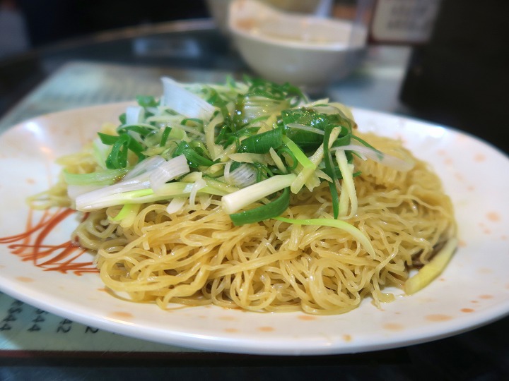 姜葱撈麺(ねぎとしょうがの撈麺)。撈麺、いわゆるまぜ麺のようなものを指します。