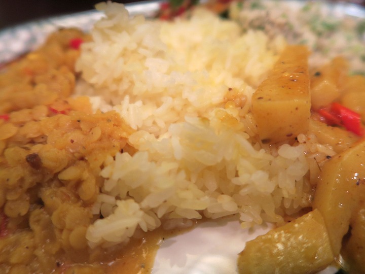 こちらのお店にカレーのごはんは、日本米とバスマティライスをブレンドしたもの。