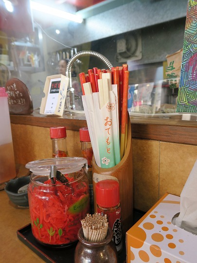卓上にあるタップリの紅生姜をいれて、アクセントを効かせたりしても美味しいですよ。