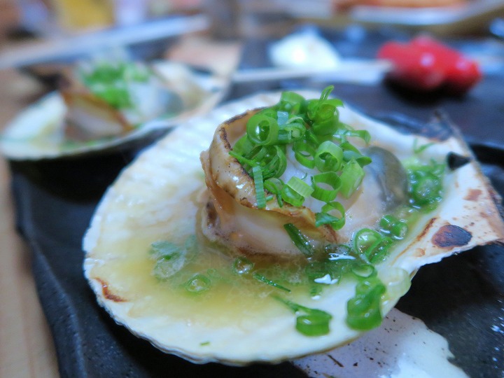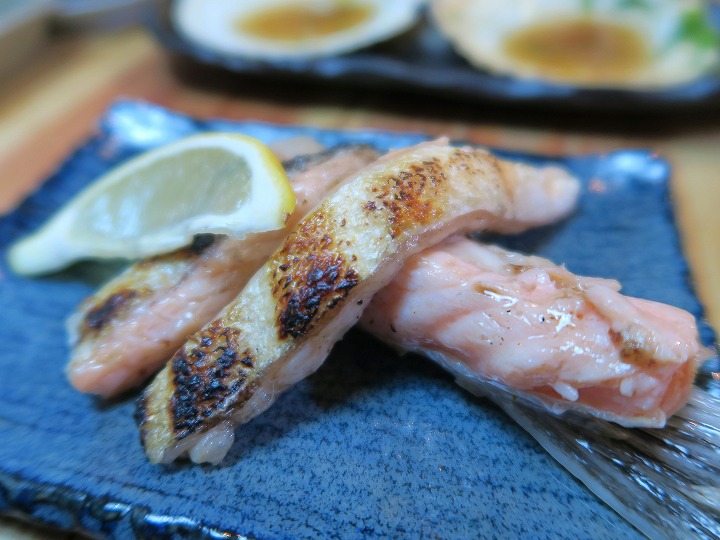 そして、活ホタテの炉端焼きと、鮭のハラス焼き。