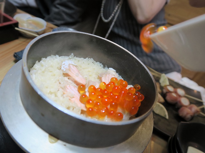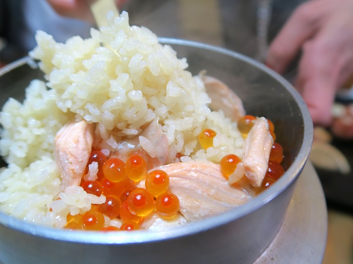 こちらはサーモンとイクラの釜飯。
