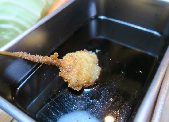 もちろん、お約束の「ソース二度漬けお断り!」