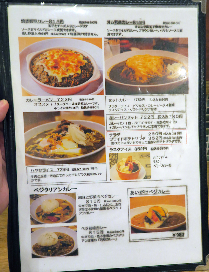 そして、焼き若草カレーや、オム若草カレー、カレーラーメン、