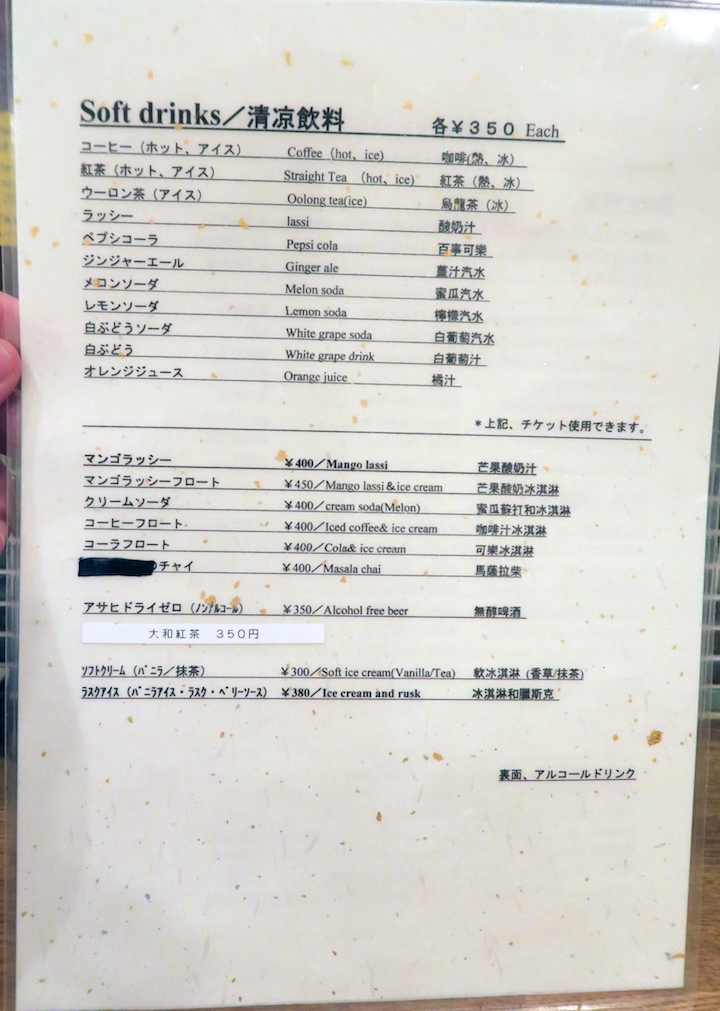 飲み物のメニューはこんな感じ。