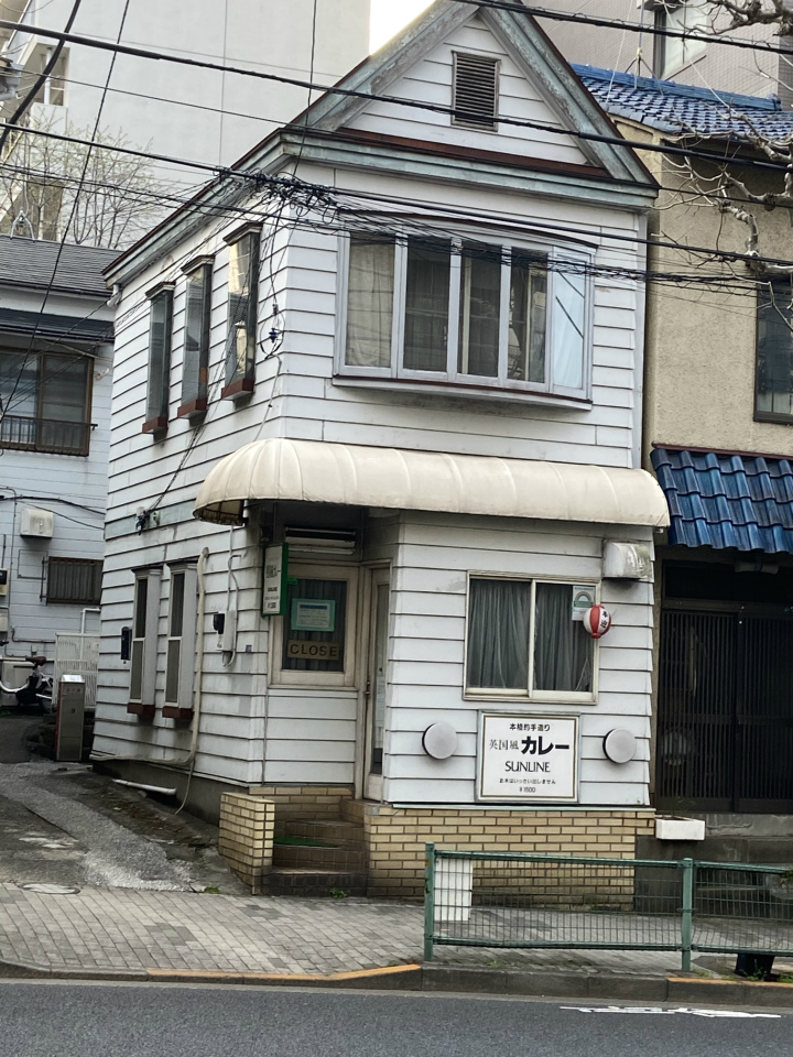 そんな中に佇む、白い一軒のお店に「カレー」の文字。