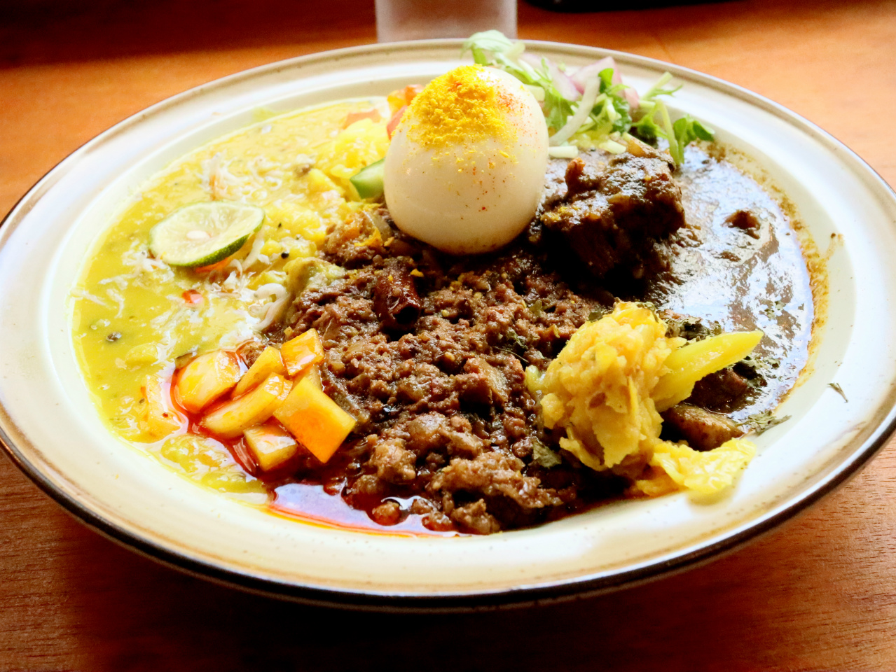 お皿の上で、カレーやスープ、副菜を混ぜながら食べると想像以上の美味しさに出会うことが出来るのです。