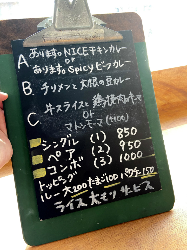 定番っぽいカレーと、ちょっと変わり種のカレーを組合わせたメニューを前に、迷うのもまた楽しい。