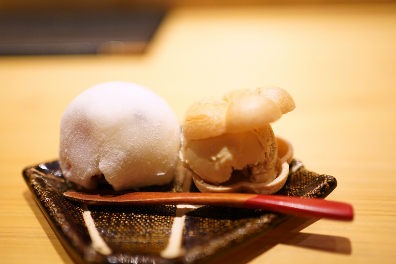 デザートは、苺大福とアイス最中をセットで楽しませていただきました。