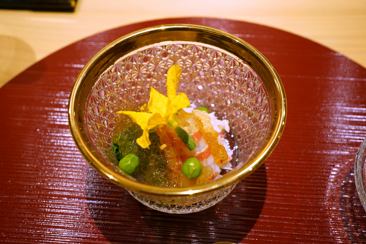 平貝の奄美と雲丹の甘味の違いを感じつつ、口の中でそれらが融和していくのが楽しい。