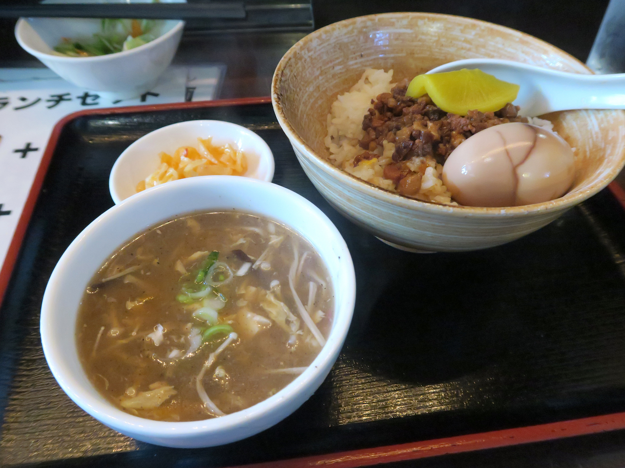 スープとお漬物と、魯肉飯。