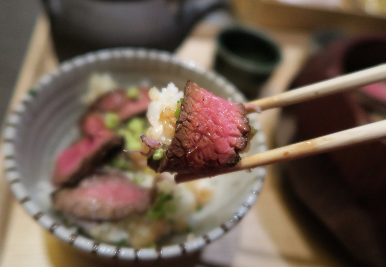 そして、2杯めは、ご飯に近江牛、そこに薬味をのっけて楽しみましょう。