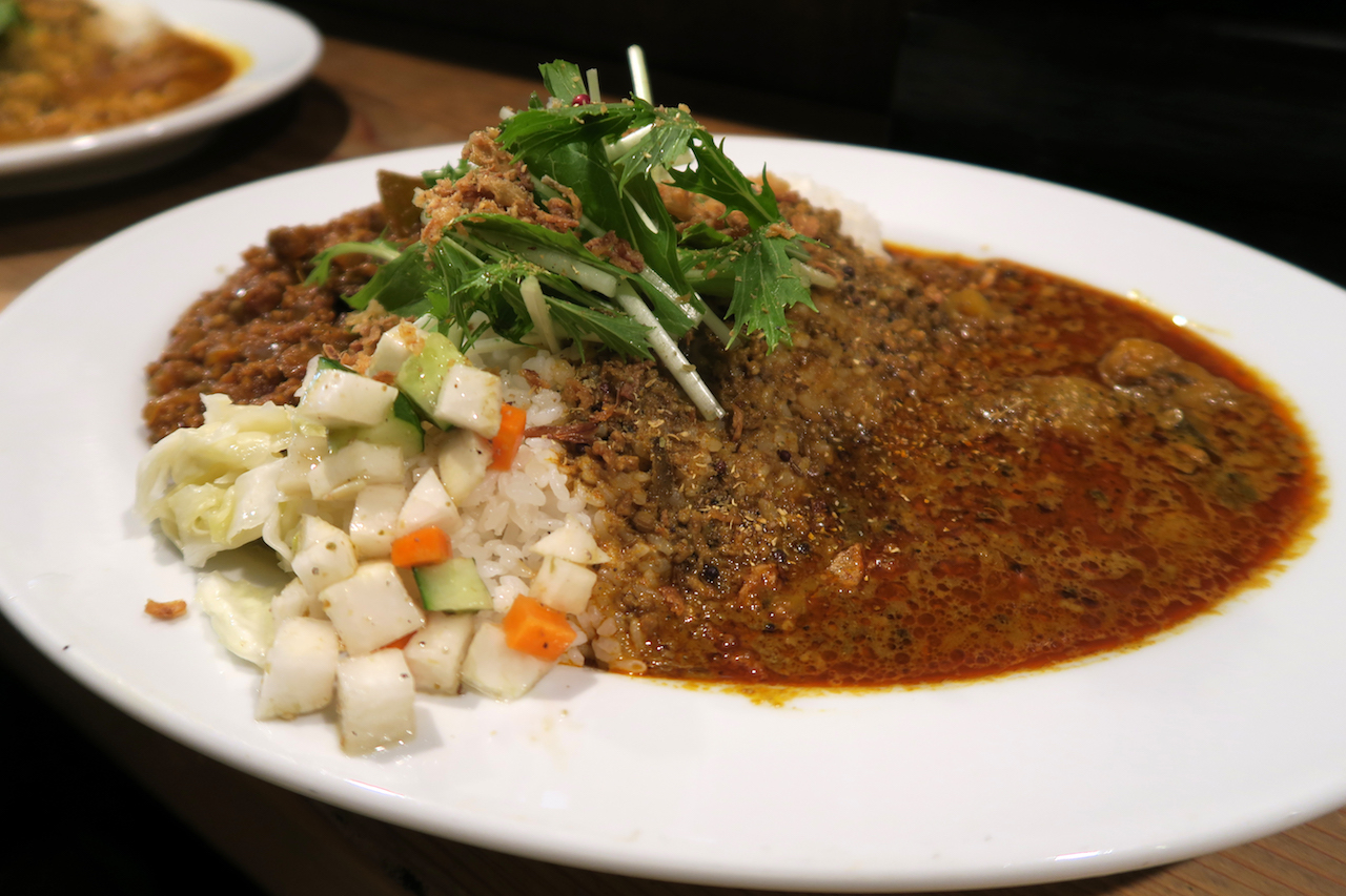 ちょっと迷いましたが、この日は、茄子キーマカレーと、スパイシーキーマカレーの“梵平ミックスカレー”をお願いしました。
