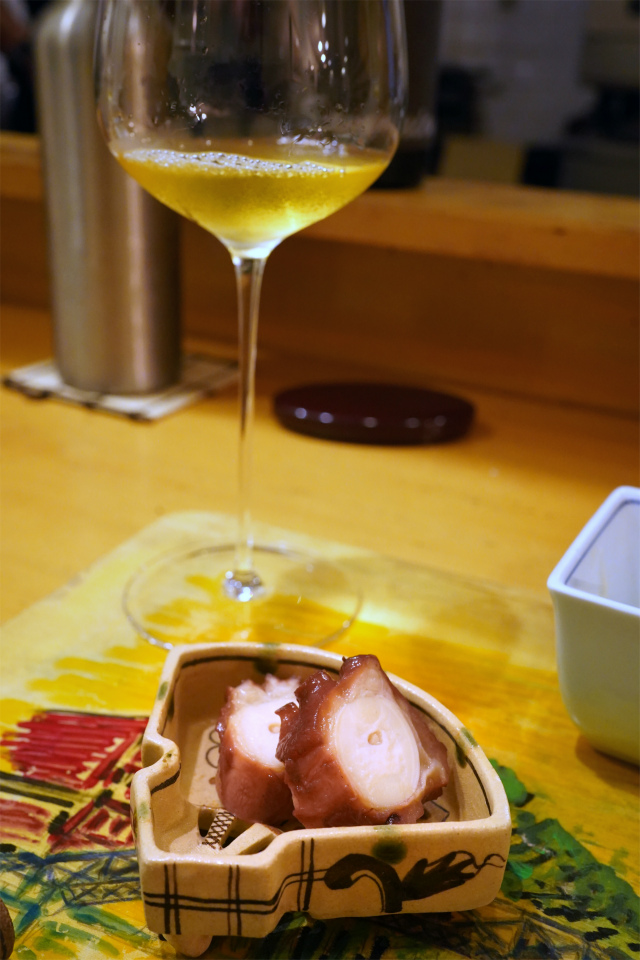 ワインの旨味の余韻と、ミズタコの旨味の方向性が本当によく合う。