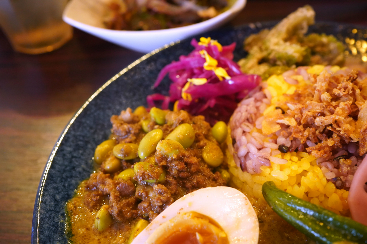 途中で半熟玉子を混ぜ合わせれば、ほのかなコクも加わり、ひとつのカレーで二通りの味わいを楽しむことも出来る。