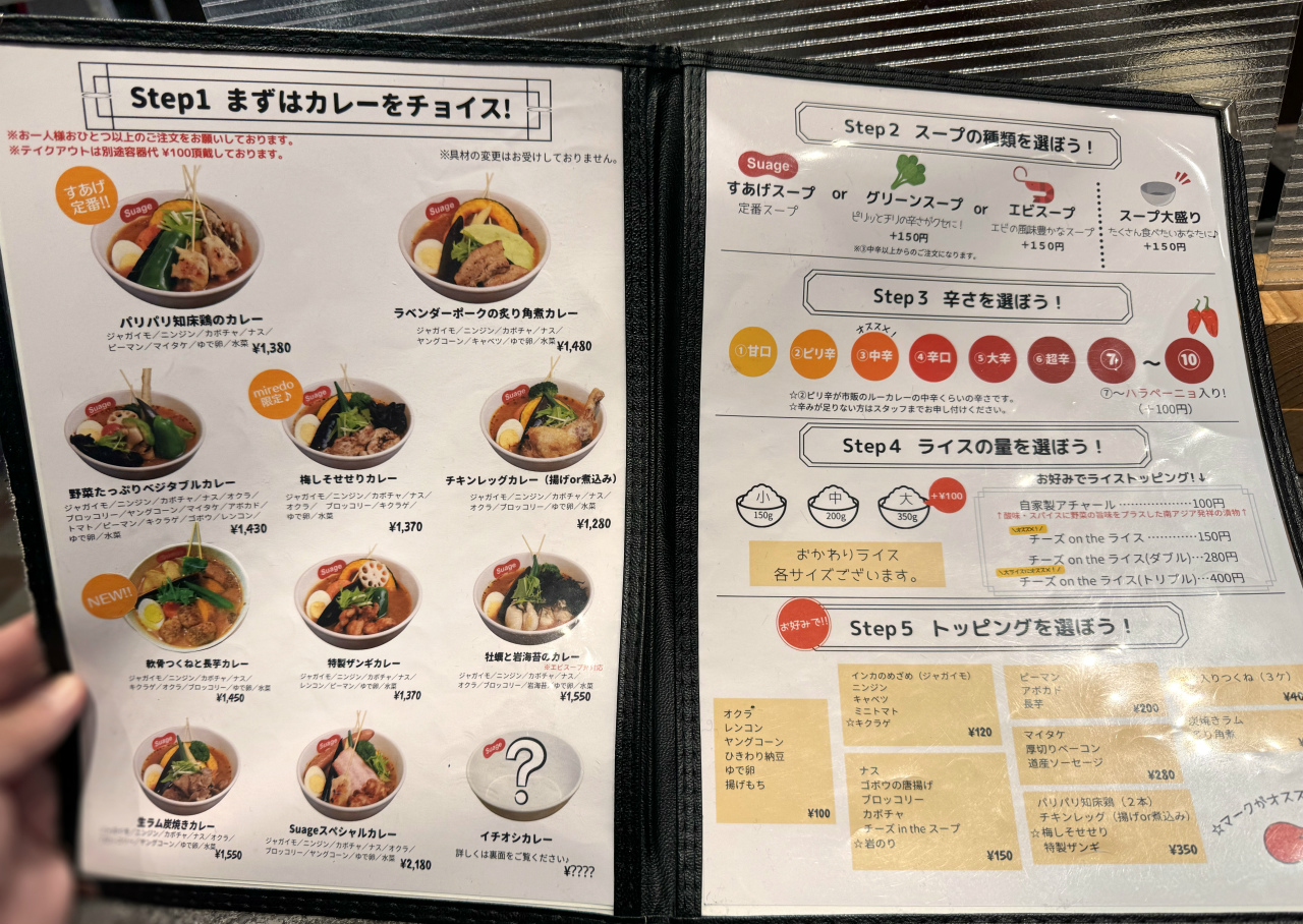 メニューはこんな感じで、多くのスープカレー店と同じように、