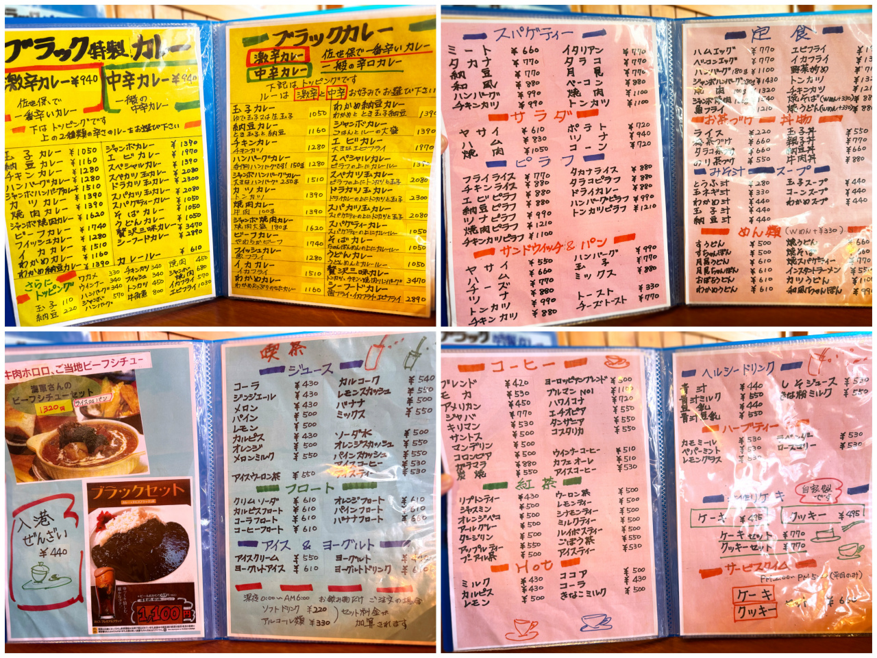 カツカレー、ハンバーグカレー、チキンカレー、スパゲッティカレー、そばカレーなど種類もかなり豊富だ。