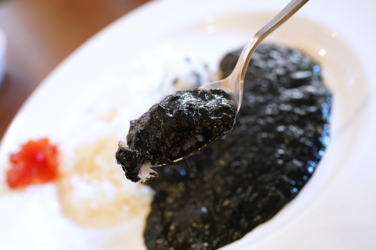 イカスミパスタを食べたことがある人ならば抵抗感も無いだろうが、そうでない人は、かなり戸惑うかもしれない。