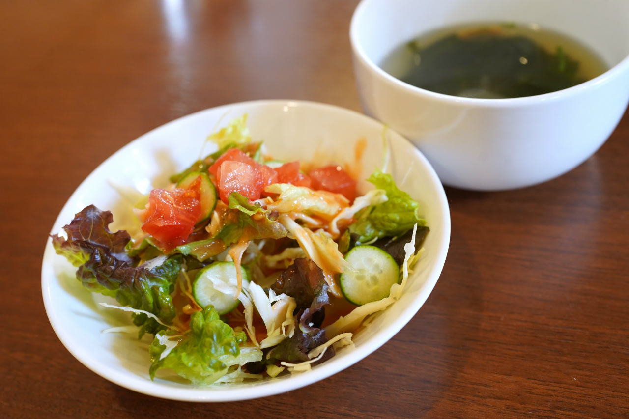 ランチセットにはミニサラダとスープが付いてくるのも嬉しい。