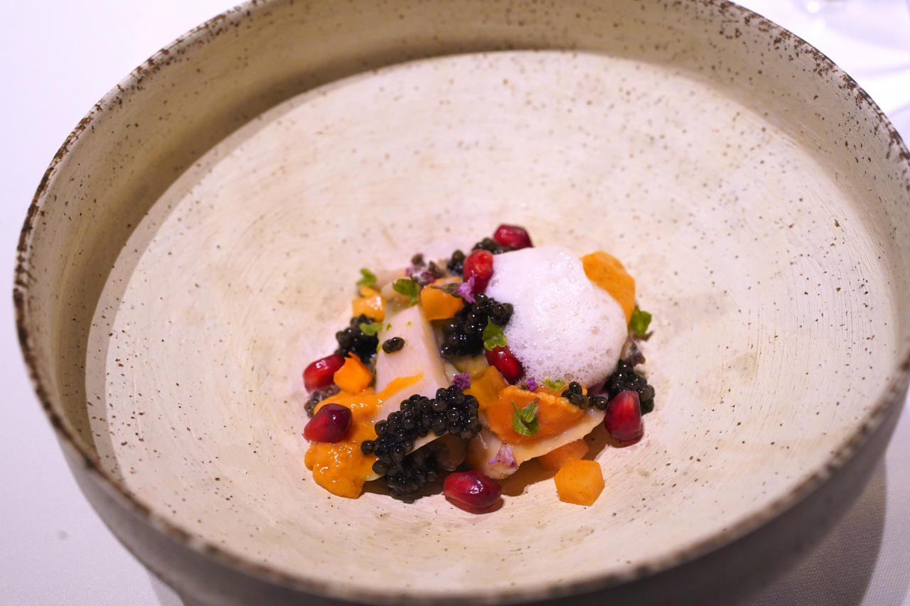 そしてザクロ、雲丹、海ぶどうも加わり、鮑の肝ソースで整えてある。