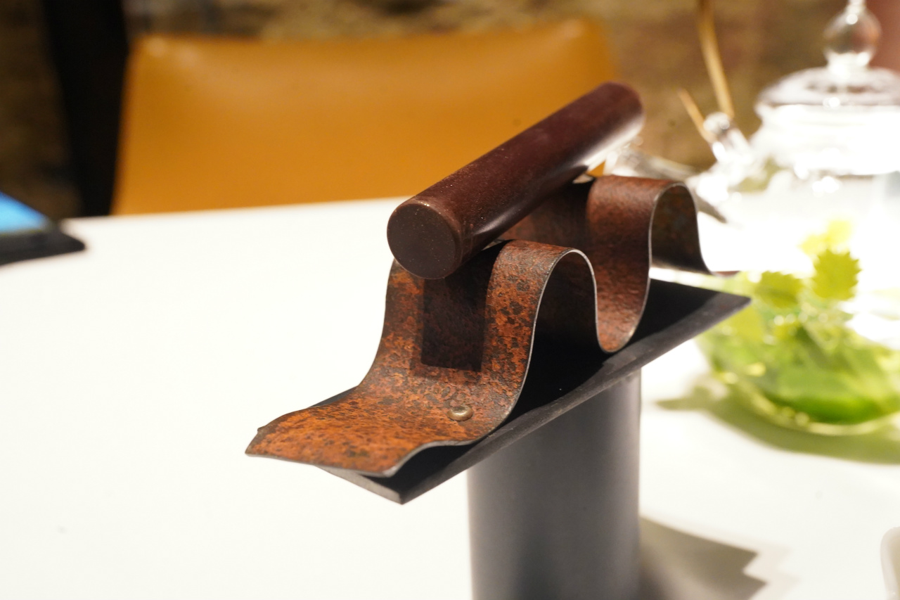 鉄骨のサブレに乗っかった前菜に始まり、最後は鉄筋に似せたガナッシュ。