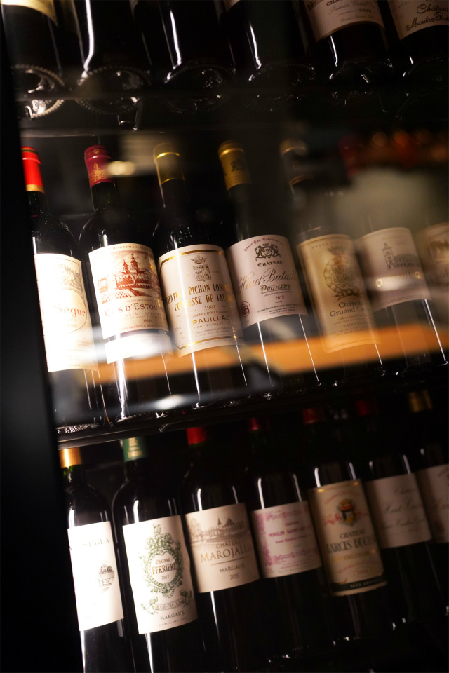 5大シャトーはもちろん、ペトリュス、ルパン、DRCなどの希少なワインも並んでいる。