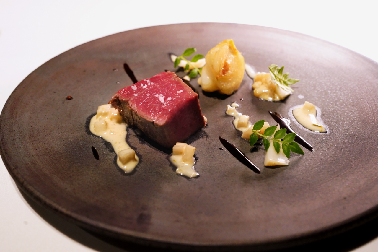 肥後黒牛のフィレ肉の周りには、ゆり根。