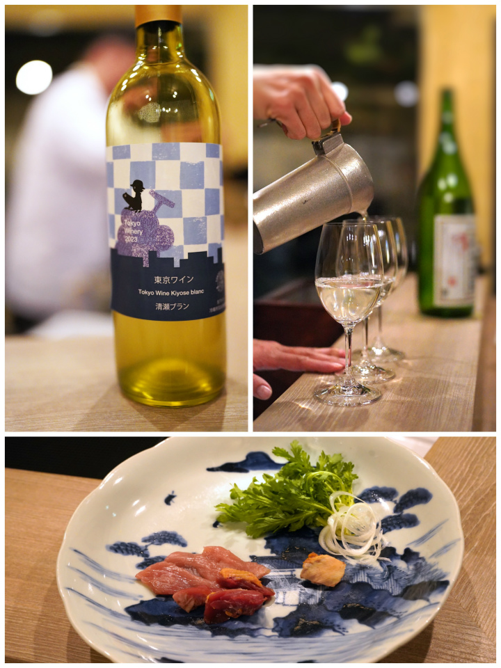 カウンターの向こうで、女将が料理に合わせた江戸酒や東京産のワインを選んでくれる。