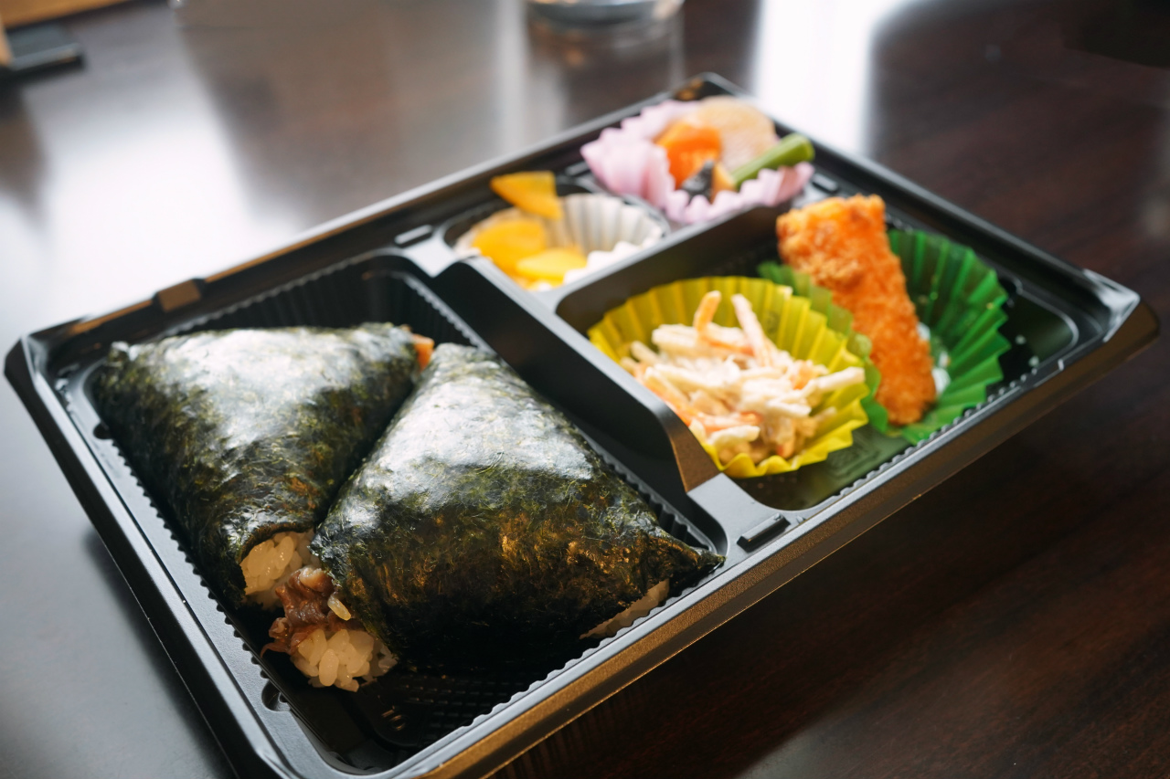 とは言え、朝から餅とおにぎりの両方は少し多いので、おにぎりの他におかず3品と漬物が付いている、『おにぎり弁当』をお願いした。(おにぎりの値段にプラス250円)