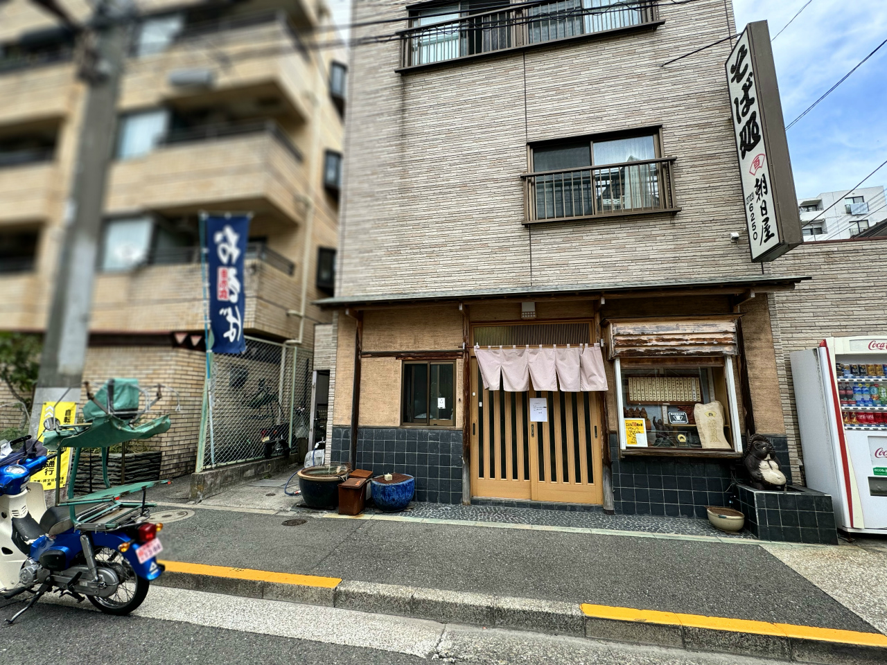 住宅地の中にポツンとある蕎麦の店“朝日屋”。