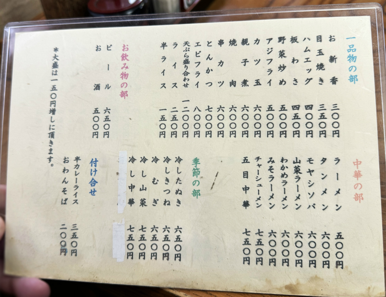 その他、一品物、ラーメンなどもあって、そば屋というよりも、地元の愛される食堂といった感じのラオンナップだ。