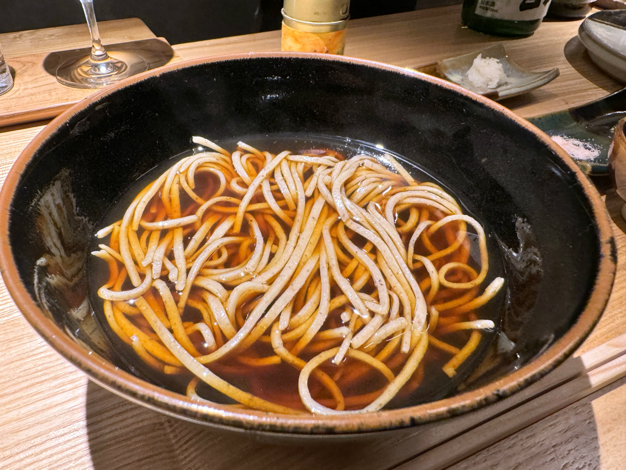 薬味は別添えで提供され、蕎麦とつゆ以外は何も入っていないシンプルさが嬉しい。