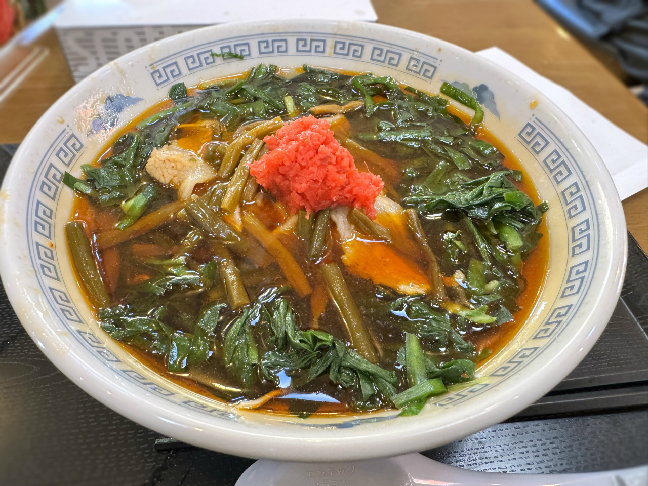 ニラの旨味、コクのあるスープの旨味に刻み紅生姜のさっぱりした味わいが加わって、いくらでも食べられてしまう感じになる。