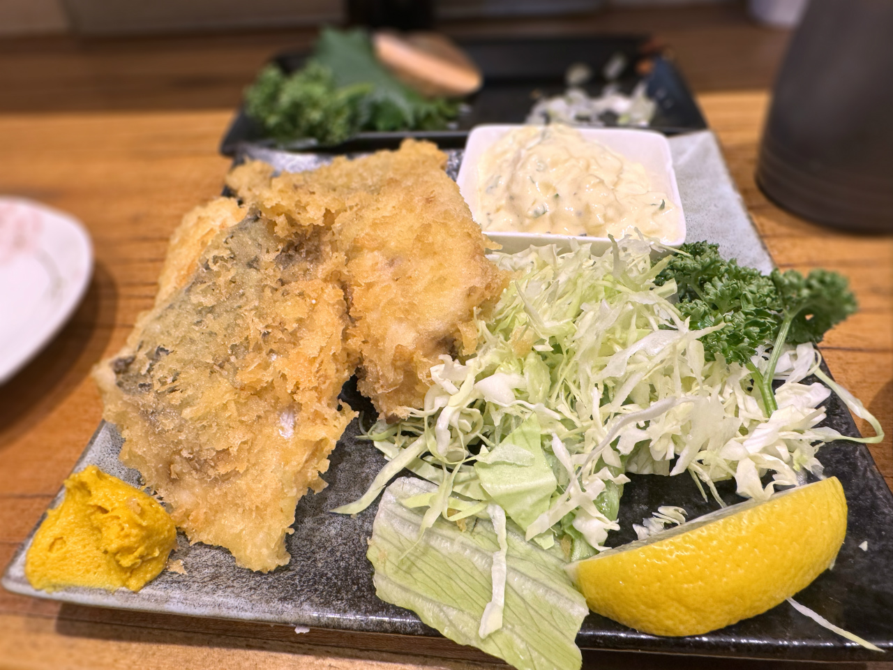 サクッとした衣の食感と、ふわふわの身の旨味が味わえる『アジフライ(300円)』