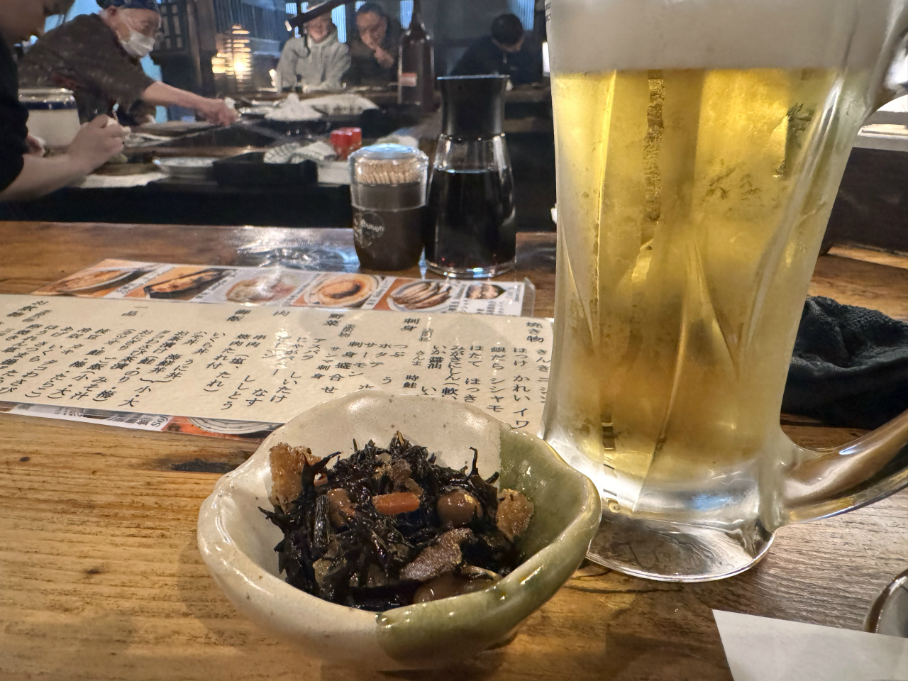 気になるものをいくつかお願いし、冷たい生ビールを楽しむ。