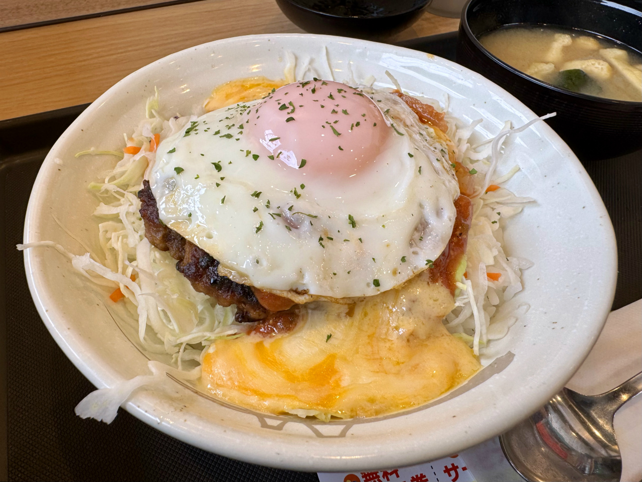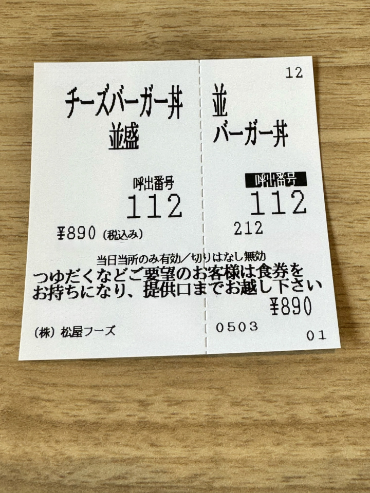 食券をカウンターに持って行くと「チーズバーガー丼入りましたぁ〜」とはならないのが救いだ。