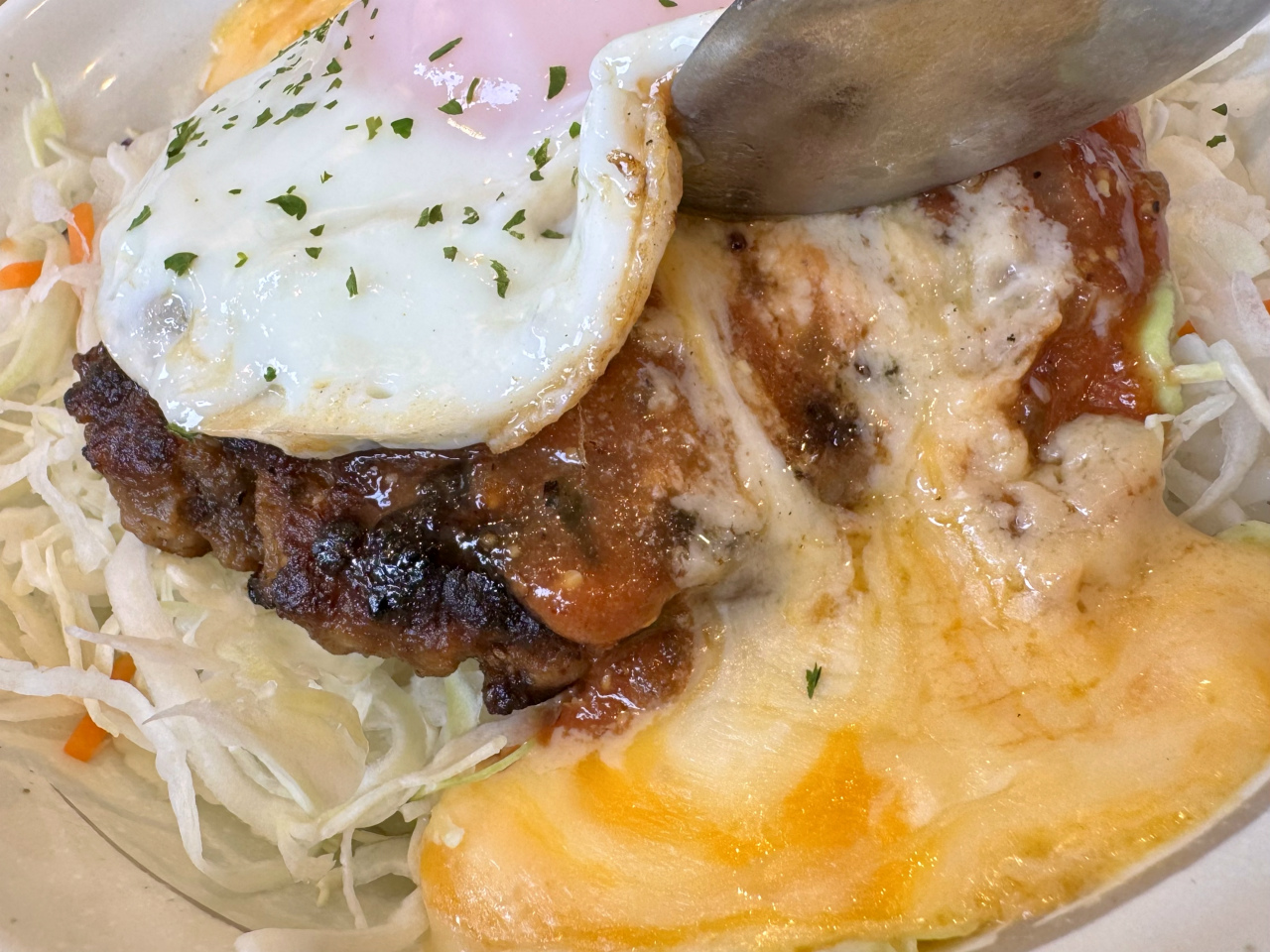 とろけるチーズ、ジュワッと肉汁、ガッツリ丼