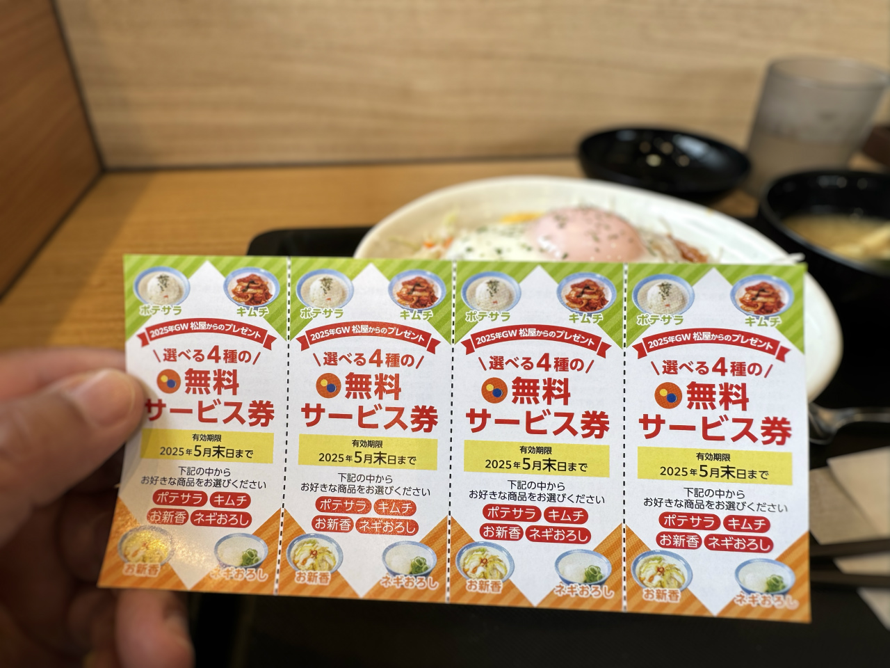 今なら、サイドメニューの無料サービス券も付いてくる。