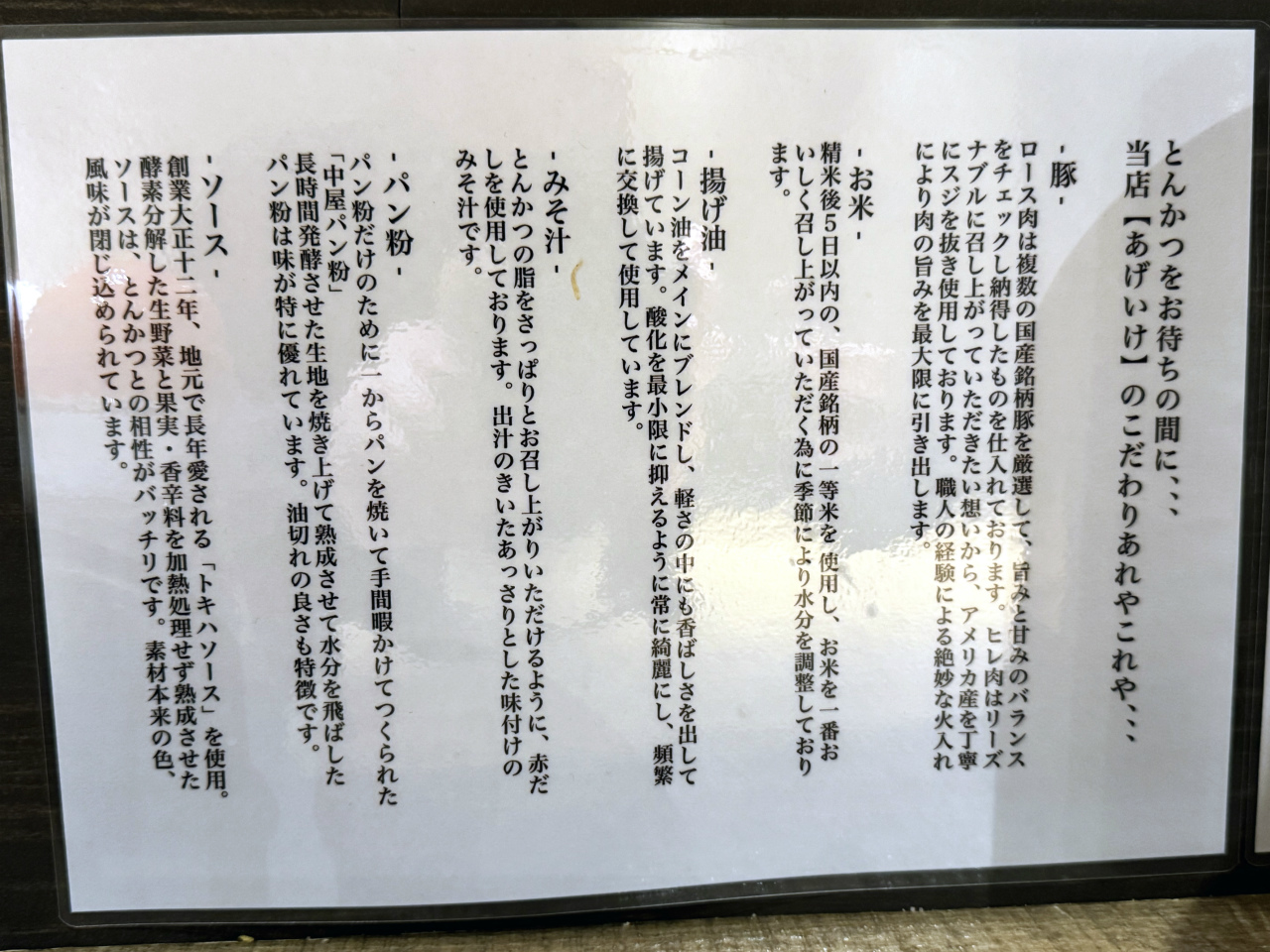 豚、お米、揚げ油、みそ汁、パン粉、ソースの全てにこだわり…