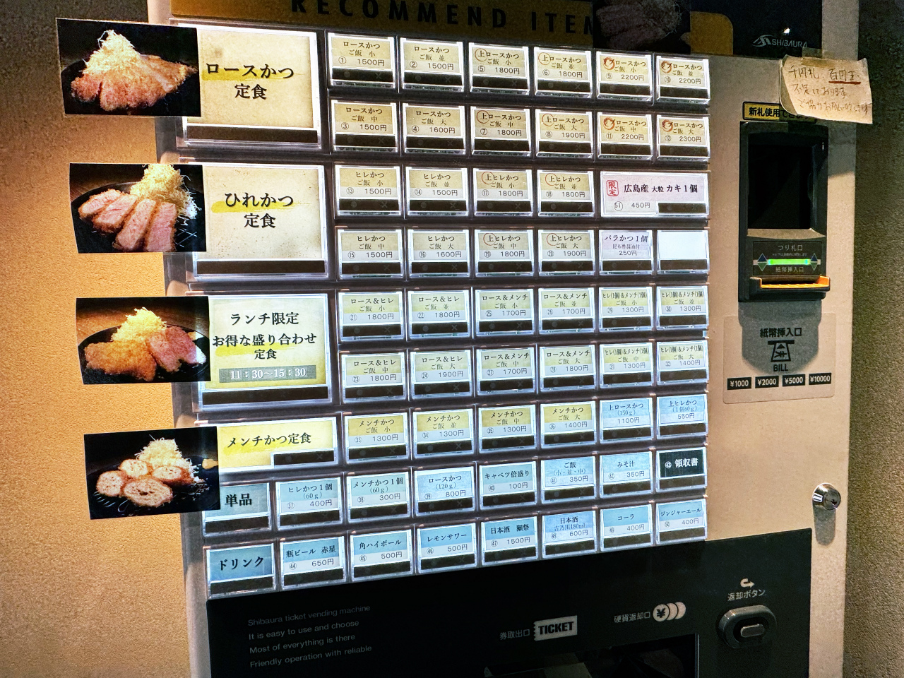 店内に入ってすぐのところに券売機があるので、先ずはここで食べたいとんかつの食券を購入する。
