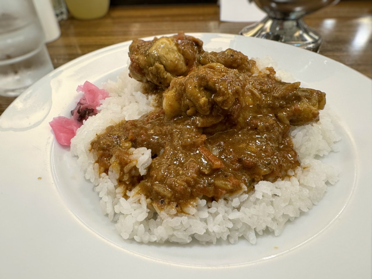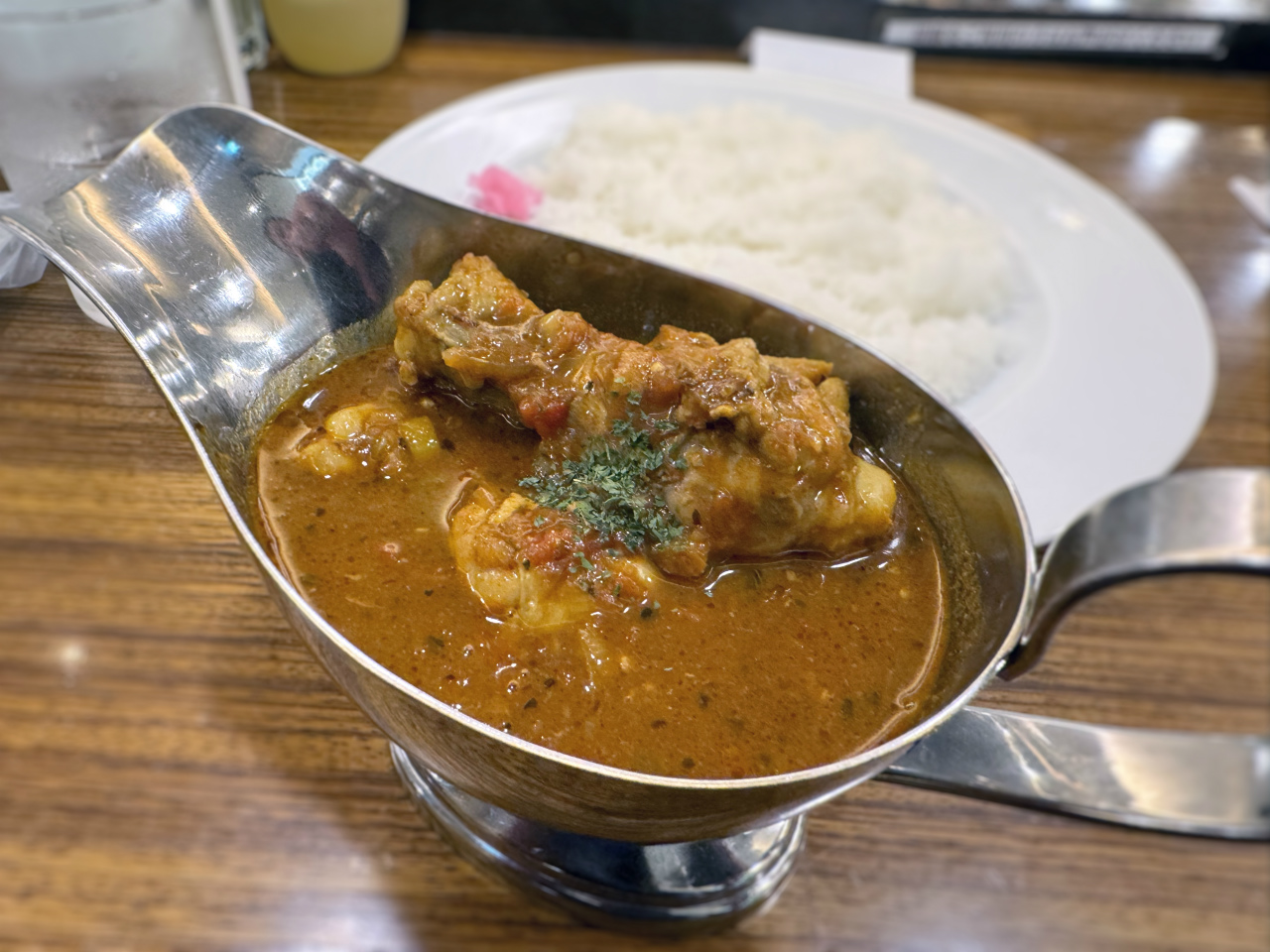 ステンレスのカレーポットに入って提供されると、食べる側としても「ピシッ」と背筋が伸びてしまう。レストランのカレーって、こうでなければならないのかもしれない。