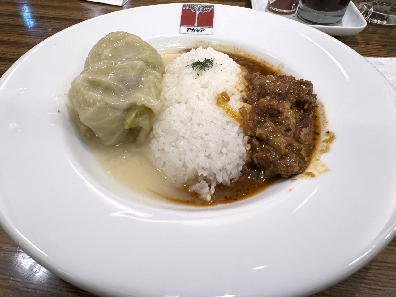 カレーもロールキャベツもここではパンではなく、ご飯で提供されるのでこういう組み合わせも本当に面白い。