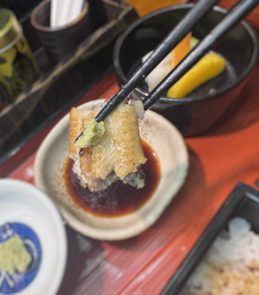 うなぎの脂が強烈な辛味を和らげてくれるので、山葵は好みでタップリ乗っけても大丈夫!