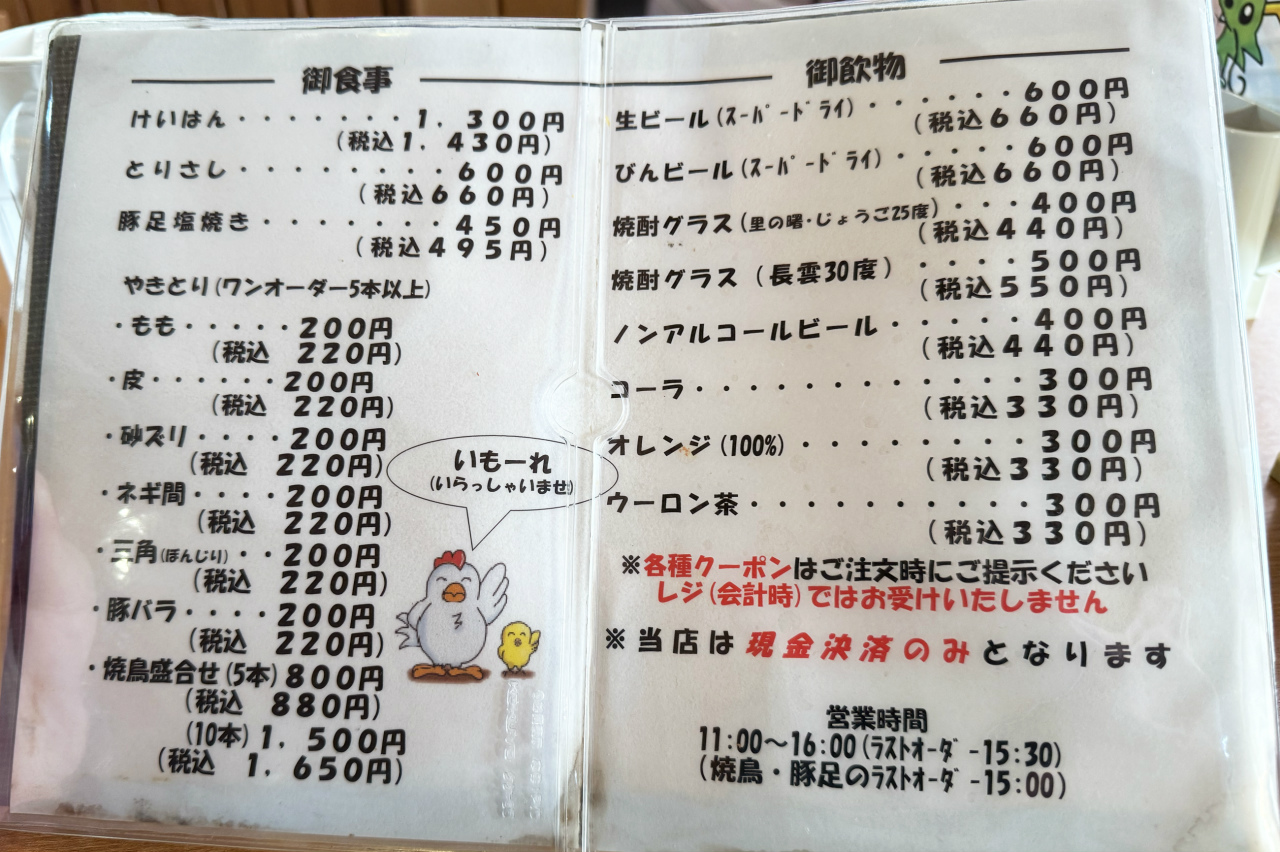 お目当ての「けいはん」をはじめ、「とりさし」や「やきとり」もラインナップ。