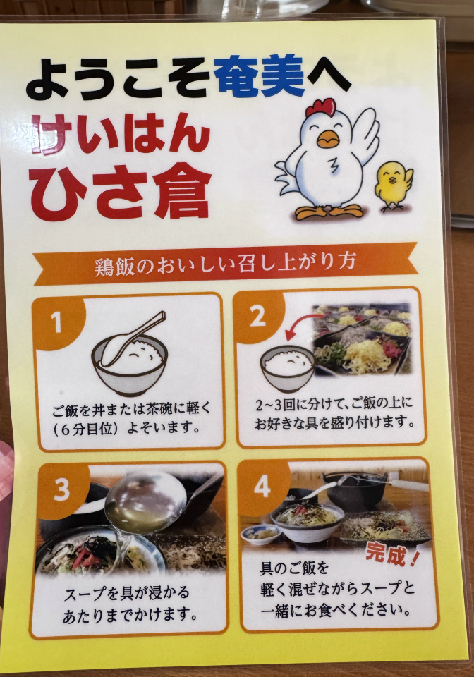 「鶏飯の美味しい召し上がり方」と書かれたものが各テーブルに置いてあるので安心だ。